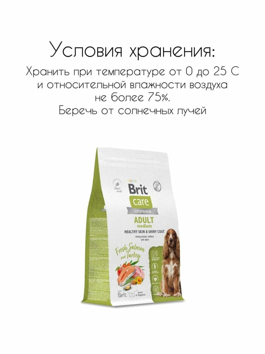 BRIT CARE, Сухой корм с лососем и индейкой для собак средних пород"Dog Adult M Healthy Skin&Shiny Coat",1.5кг