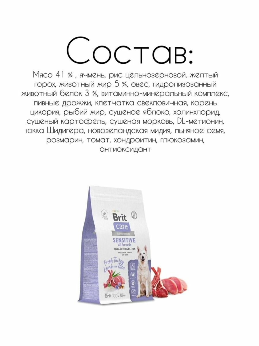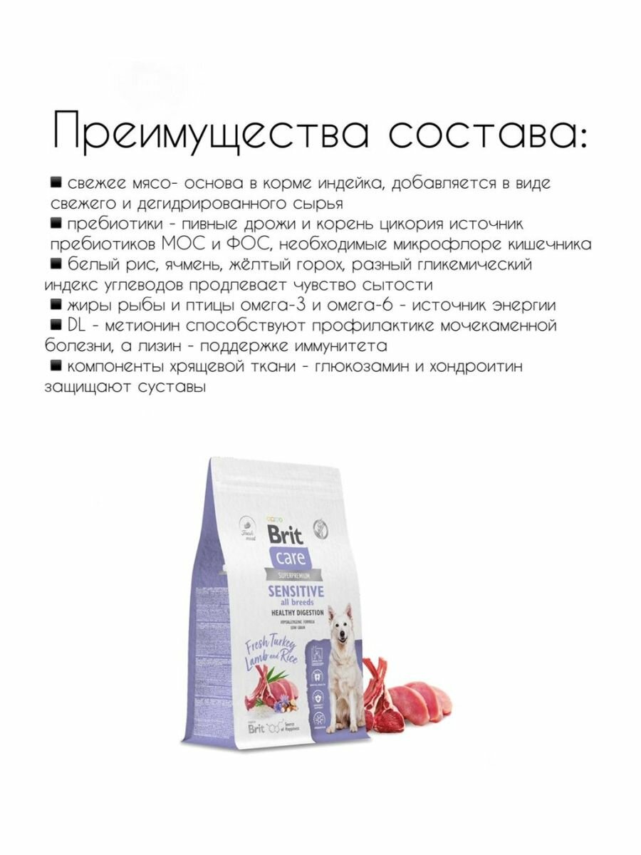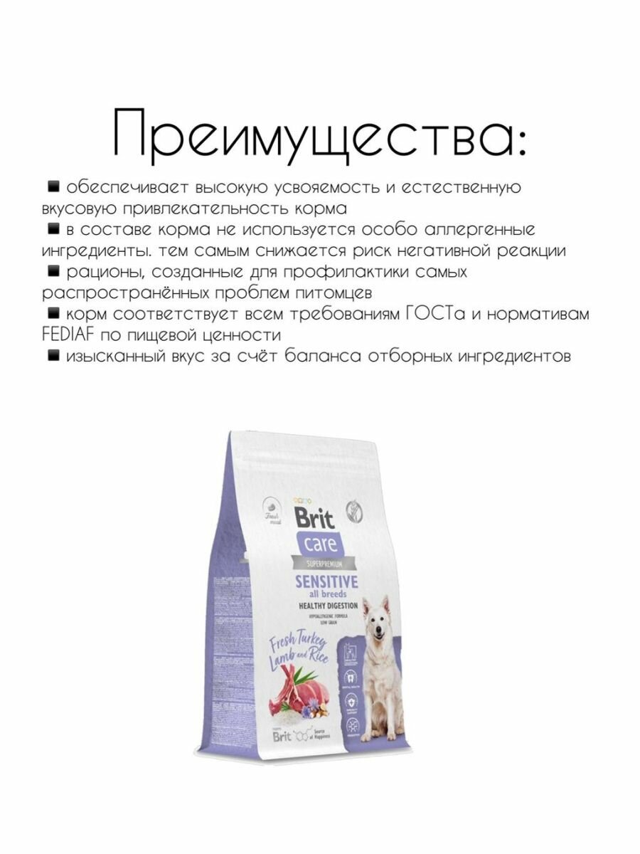 Brit Сухой корм Care Dog Adult Sensitive Healthy Digestion для взрослых собак всех пород с индейкой и ягненком, 12кг 12 кг
