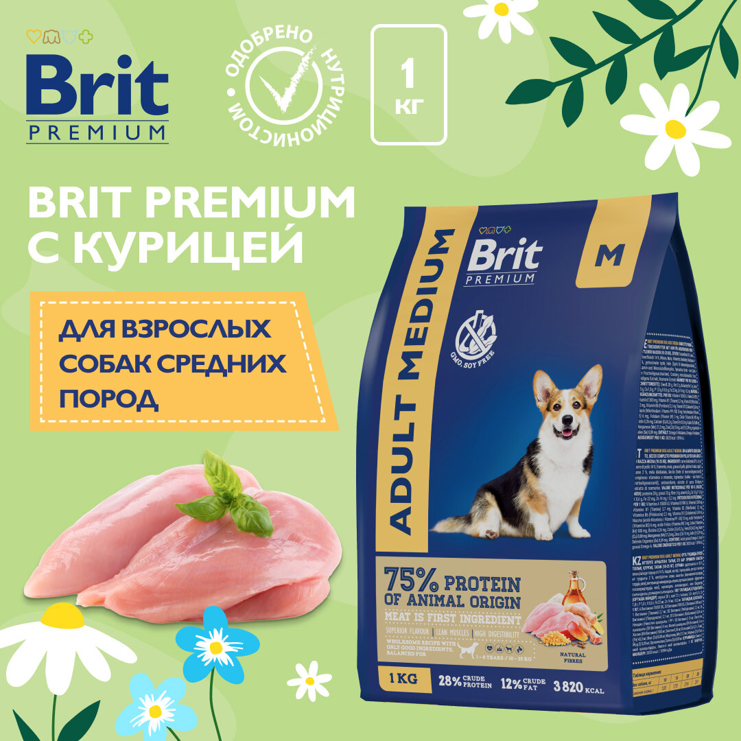 Купить BRIT Premium Dog Adult Medium Корм сух.курица д/собак средних пород 1кг