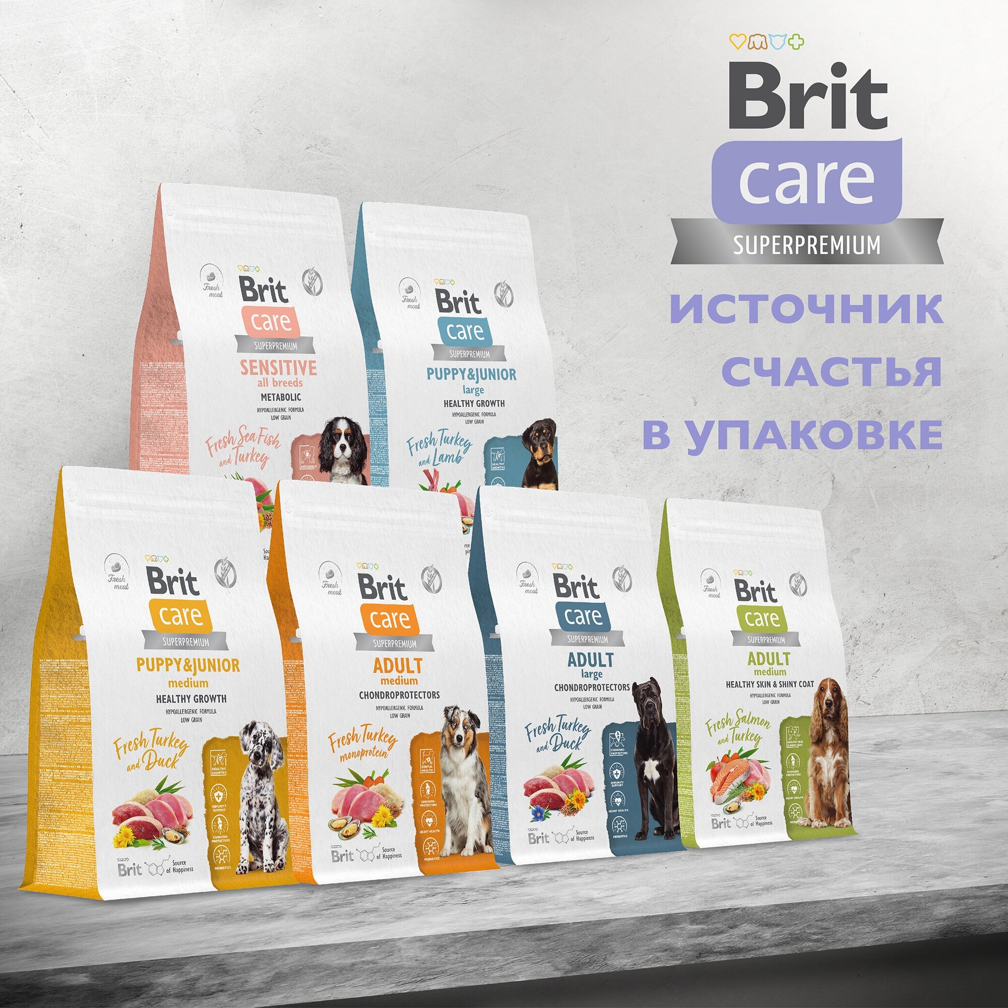 Brit Care сухой корм с морской рыбой и индейкой для взрослых собак всех пород для улучшения обмена веществ, 1,5 кг.