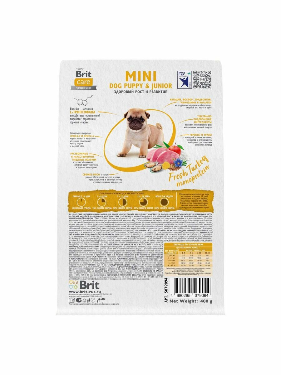 Brit Care Mini Puppy&Junior Healthy Growth сухой корм для щенков, беременных и кормящих собак мелких пород, с индейкой - 400 г