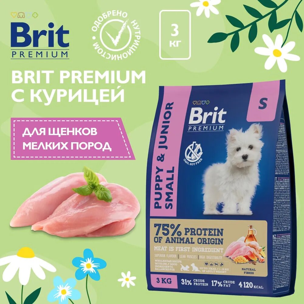 Корм для щенков мелких пород Brit Premium Dog Puppy and Junior Small, курица, 3 кг