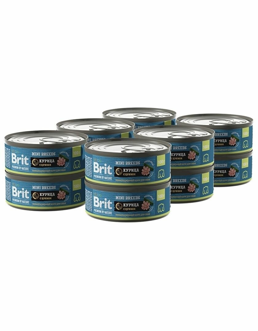 Корм Brit Premium By Nature Mini Breeds (консерв.) для собак малых пород, с курицей и цукини, 100 г x 12 шт