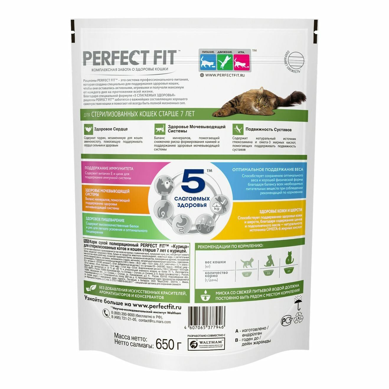Perfect Fit Сухой корм для стерилизованных котов и кошек старше 7 лет с курицей 650 г (2 шт)