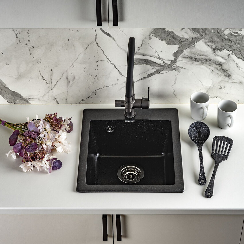 Кухонная врезная мойка из искусственного камня Gerhans А-10, черный цвет, 48 х 41 см