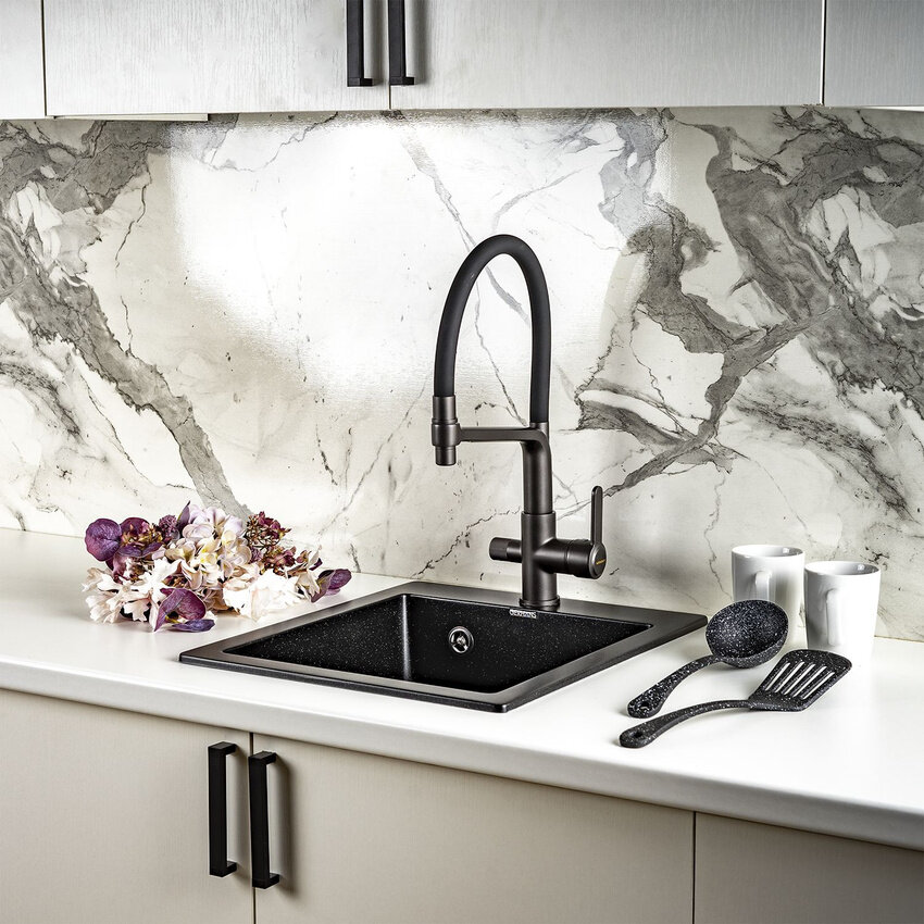 Комплект мойка для кухни Gerhans A10-22 Черная со смесителем W4998-3-22