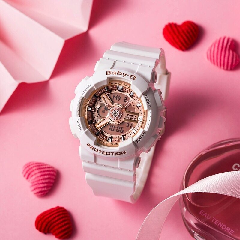 Наручные часы CASIO Baby-G BA-110-7A1 женские, кварцевые, будильник, хронограф, секундомер, таймер обратного отсчета, водонепроницаемые, подсветка стрелок, подсветка дисплея, белый
