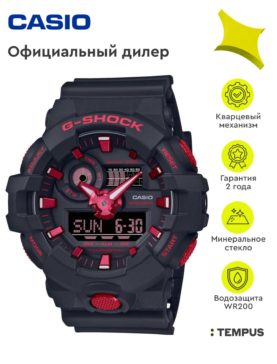 Часы наручные электронные мужские CASIO G-SHOCK GA-700BNR-1A на резиновом ремешке черного цвета