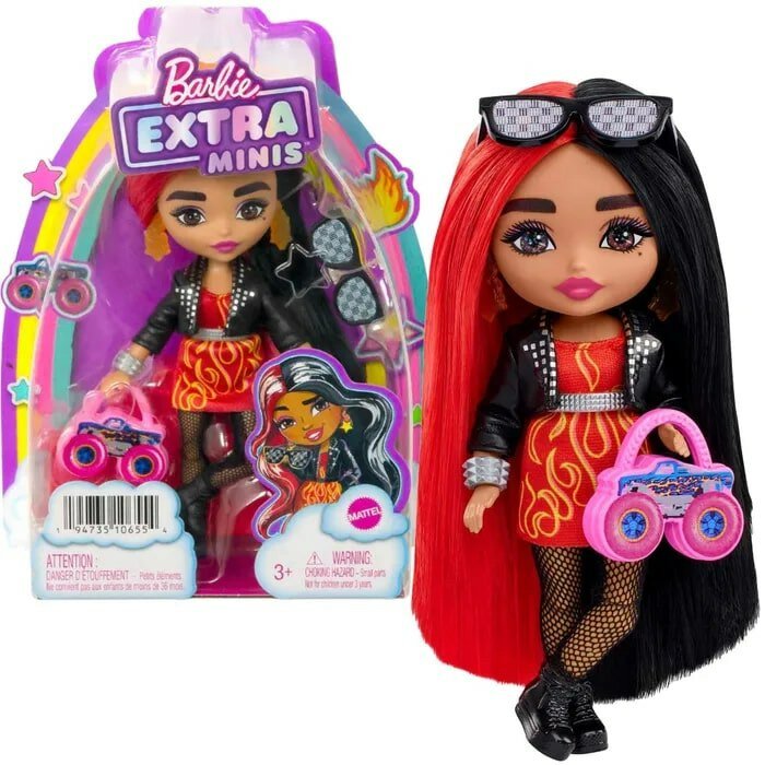Купить Кукла Barbie Extra Minis в мотокуртке, с аксессуарами и подставкой, HKP88