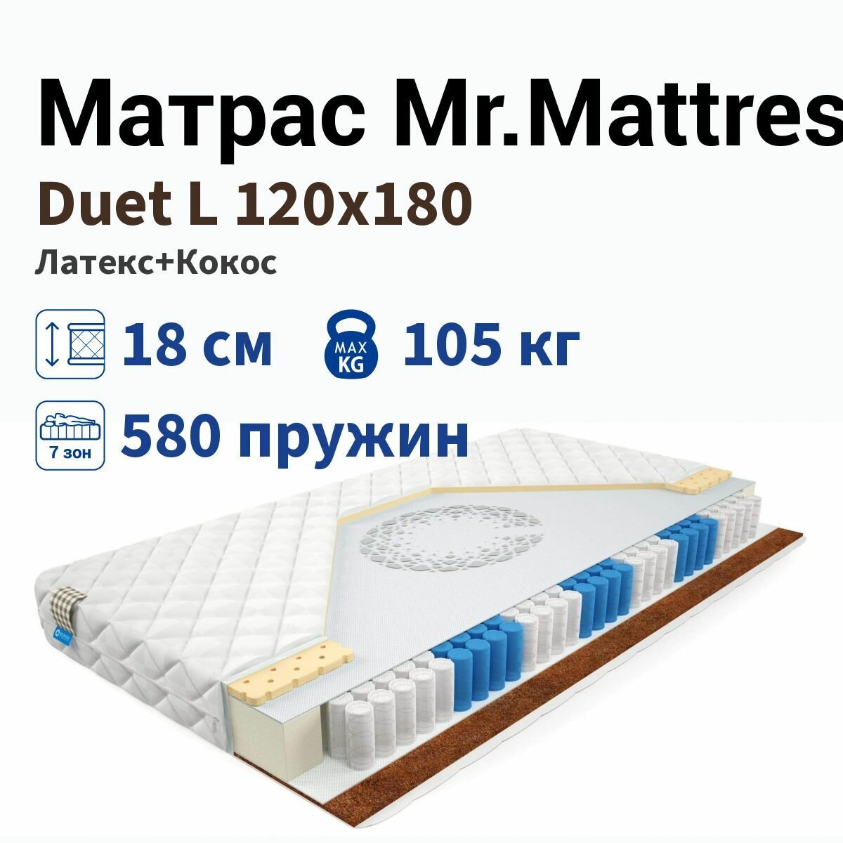 Матрас Mr.Mattress Duet L 120х190, стандартный