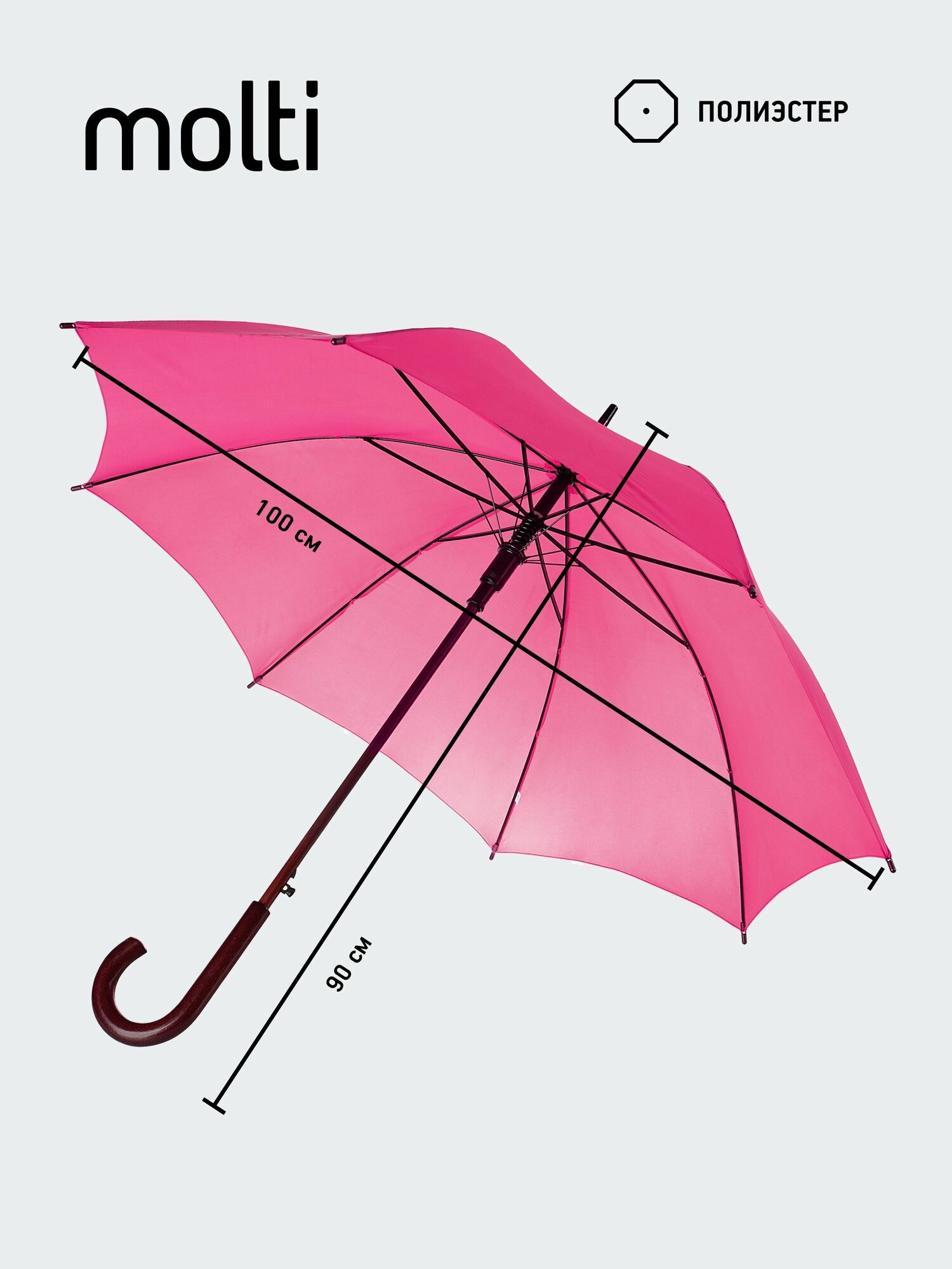 Купить Зонт женский, трость, зонтик пляжный большой, полуавтомат, 8 спиц, купол 100 см, molti ярко-розовый Барби