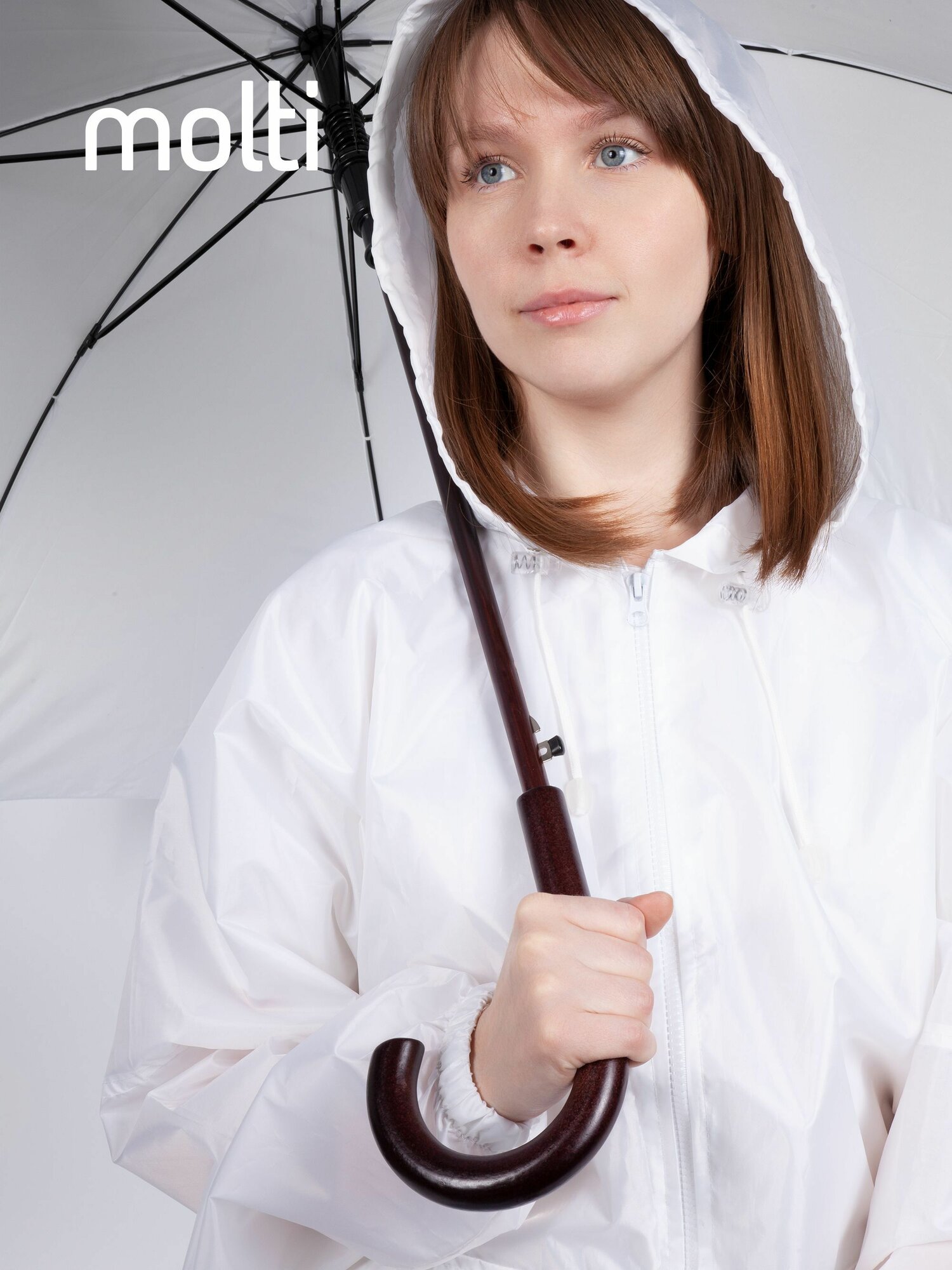 Зонт-трость molti, полуавтомат, купол 100 см., деревянная ручка, белый