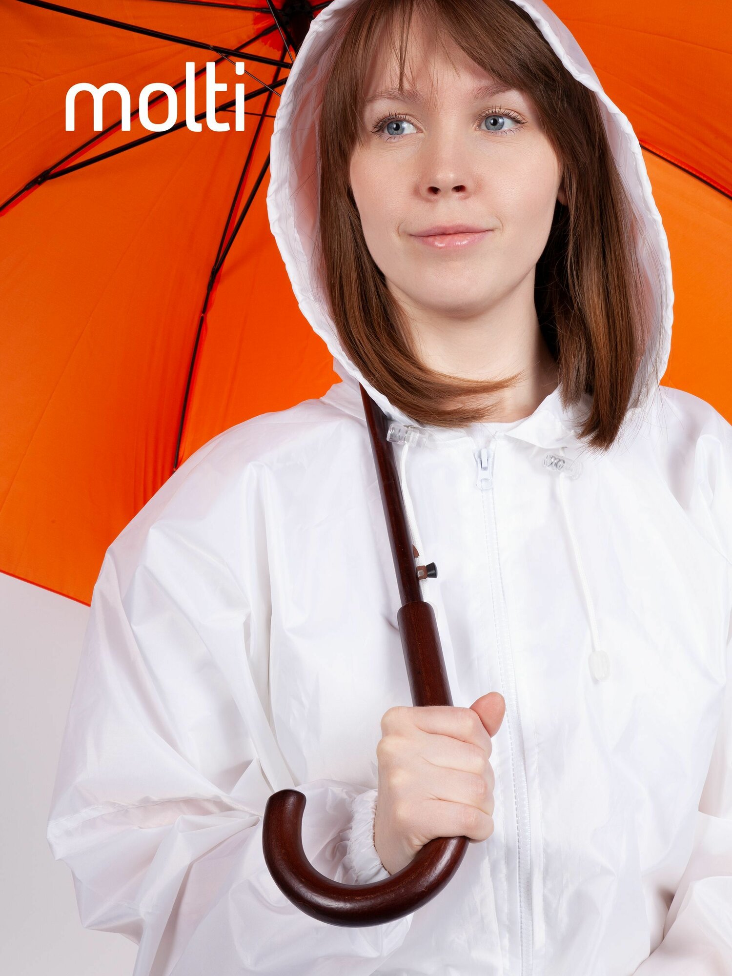 Зонт-трость molti, полуавтомат, купол 100 см., деревянная ручка, белый