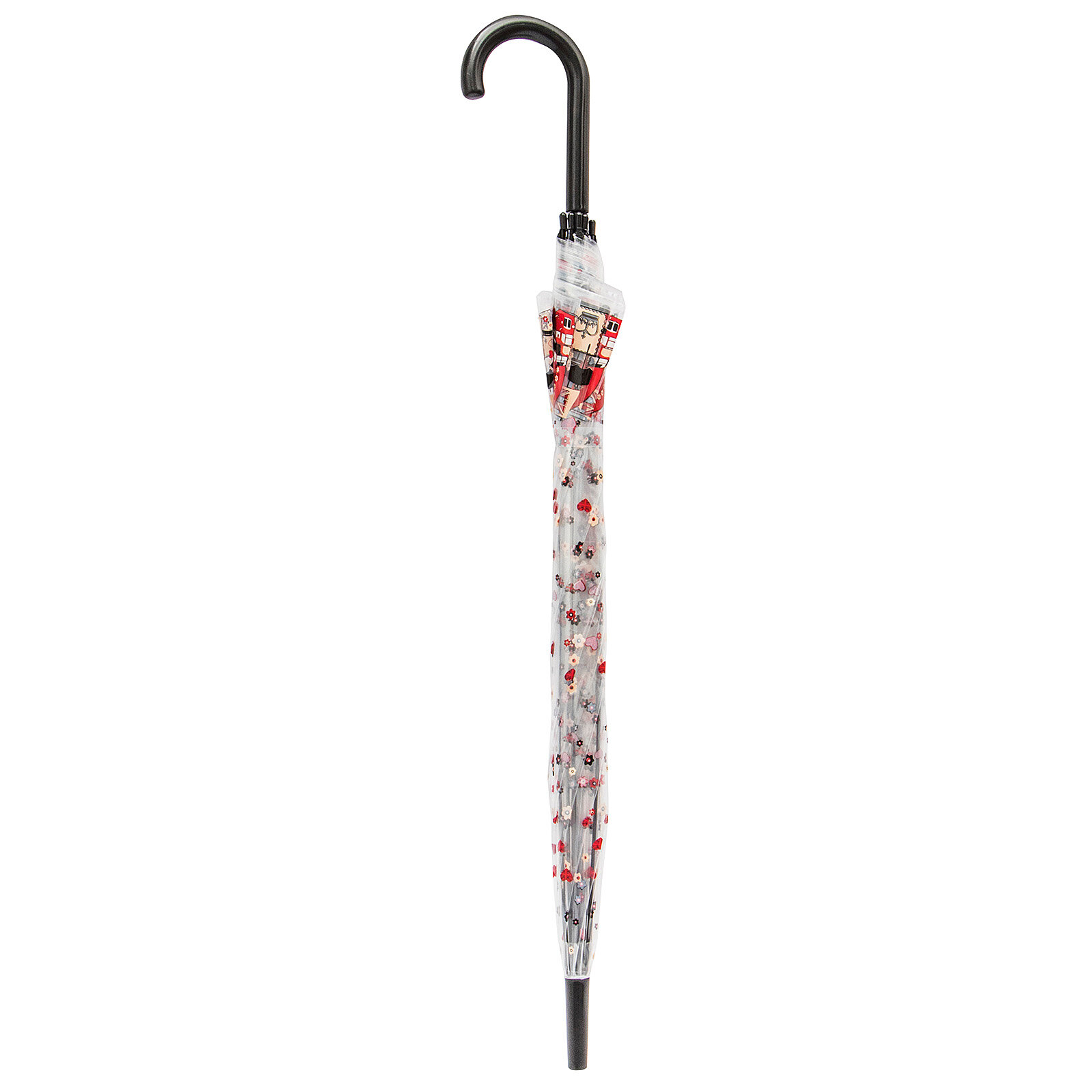 Зонт Цветы малый красные Эврика, зонт-трость прозрачный, женский, унисекс, 8 спиц, диаметр купола 80 см