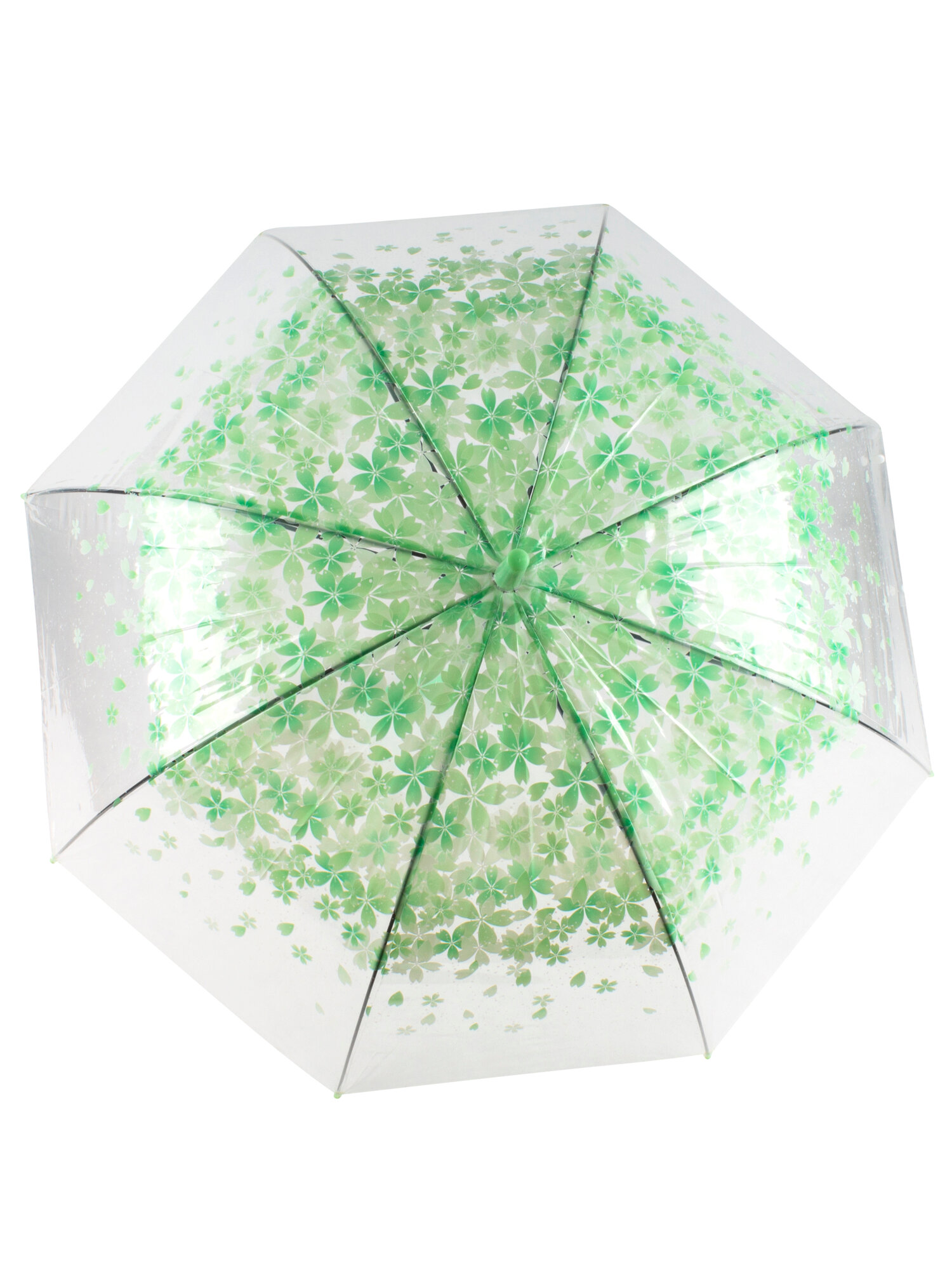 Зонт Цветы малый зеленые Эврика, зонт-трость прозрачный, женский, унисекс, 8 спиц, диаметр купола 80 см