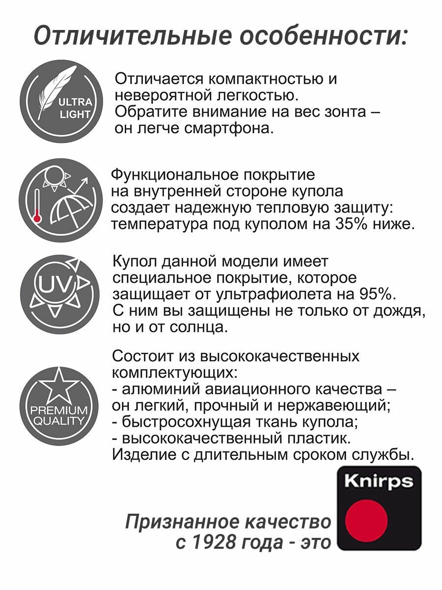 Мини-зонт механический Knirps, легкий - вес 180 г, от дождя, солнца и тепла