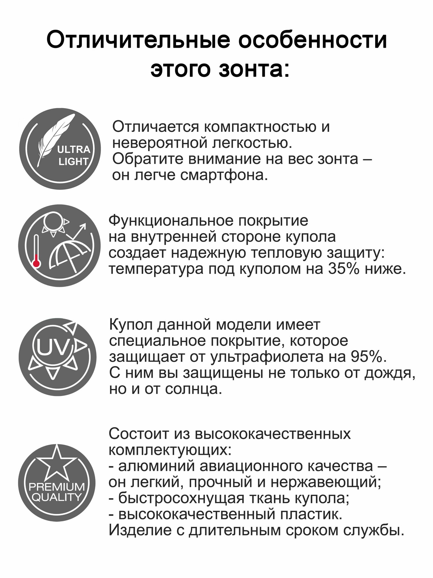 | Плюсы: | Невероятно легкий зонт |