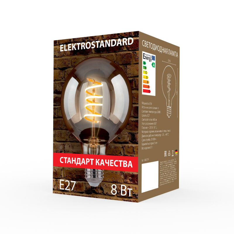 Филаментная светодиодная лампа Classic FD G95 E27 Elektrostandard BLE2709, 8 Вт 3300 K, спираль, тонированная интересное: