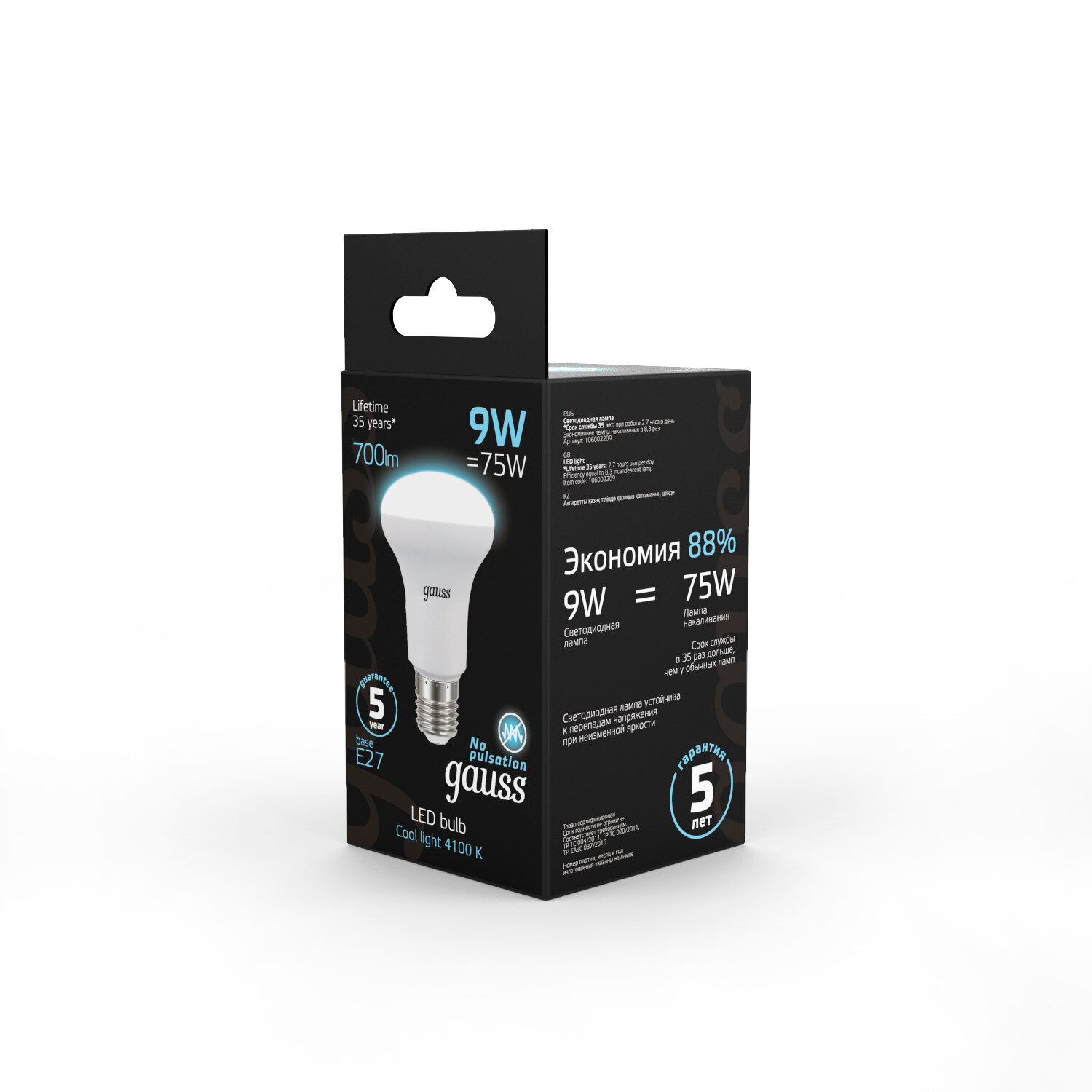 Лампа светодиодная gauss 106002209, E27, R63, 9 Вт, 4100 К