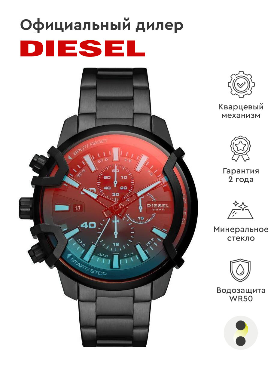 Наручные часы DIESEL Griffed, черный, мультиколор интересное: