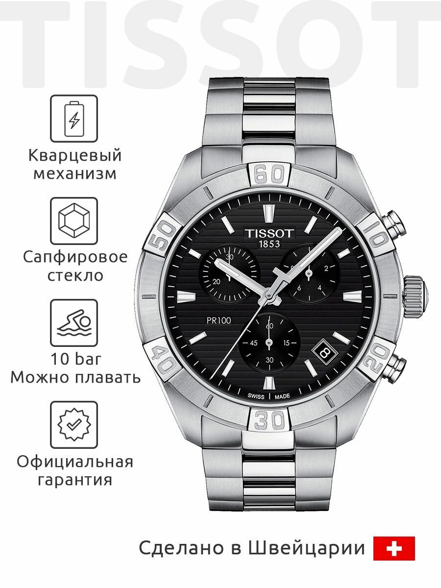 Швейцарские кварцевые часы Tissot PR 100 Sport Gent Chronograph T101.617.11.051.00 на стальном браслете, с водозащитой 10 бар и международной гарантией от производителя