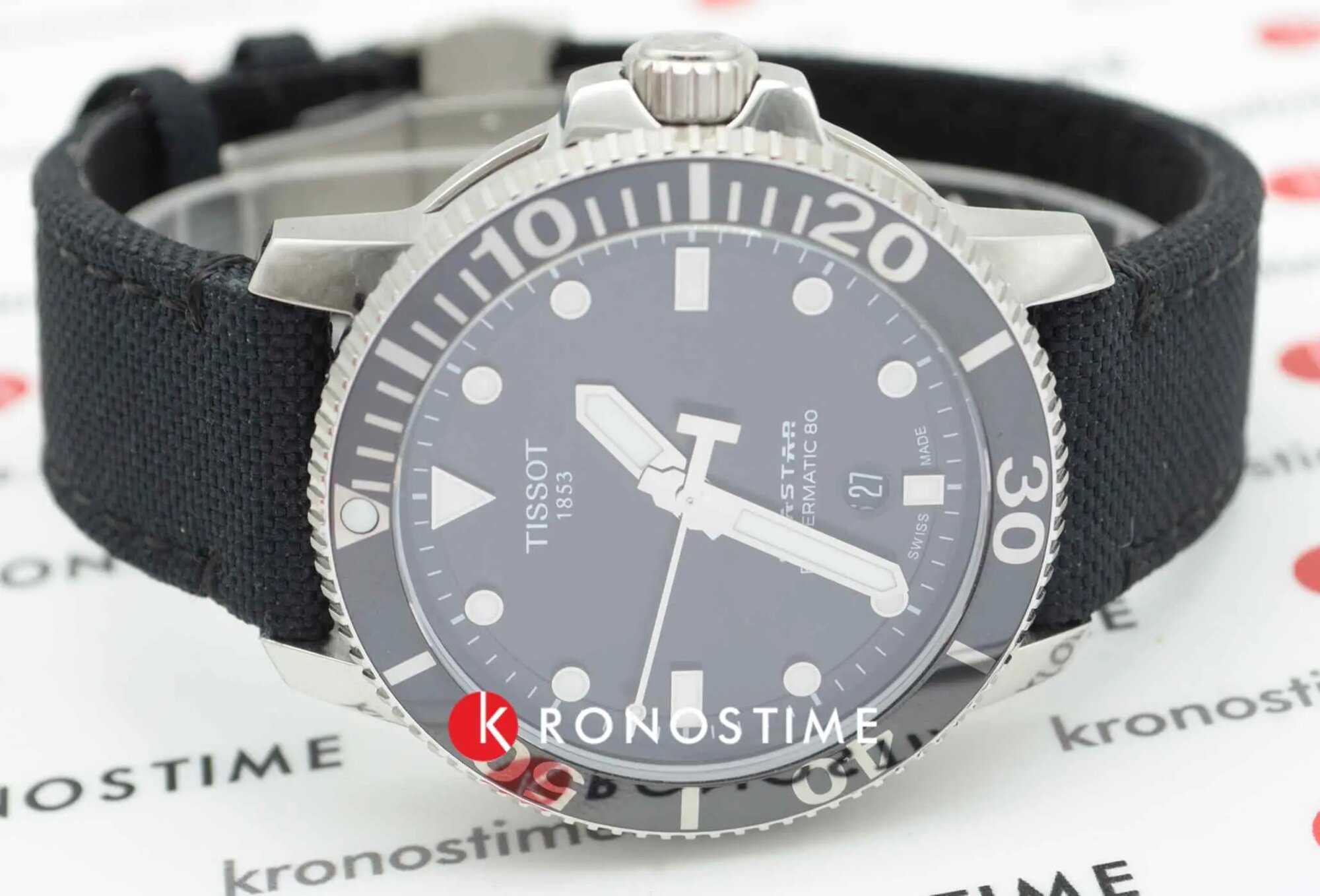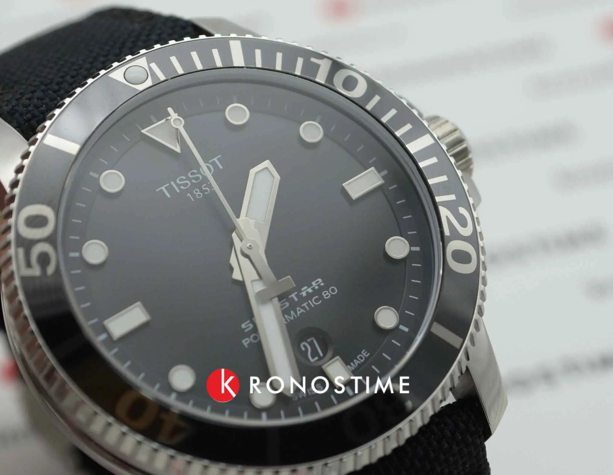 Швейцарские механические часы с автопозаводом Tissot Seastar 1000 Powermatic 80 T120.407.17.051.00 на тканевом браслете, с водозащитой 30 бар и международной гарантией от производителя
