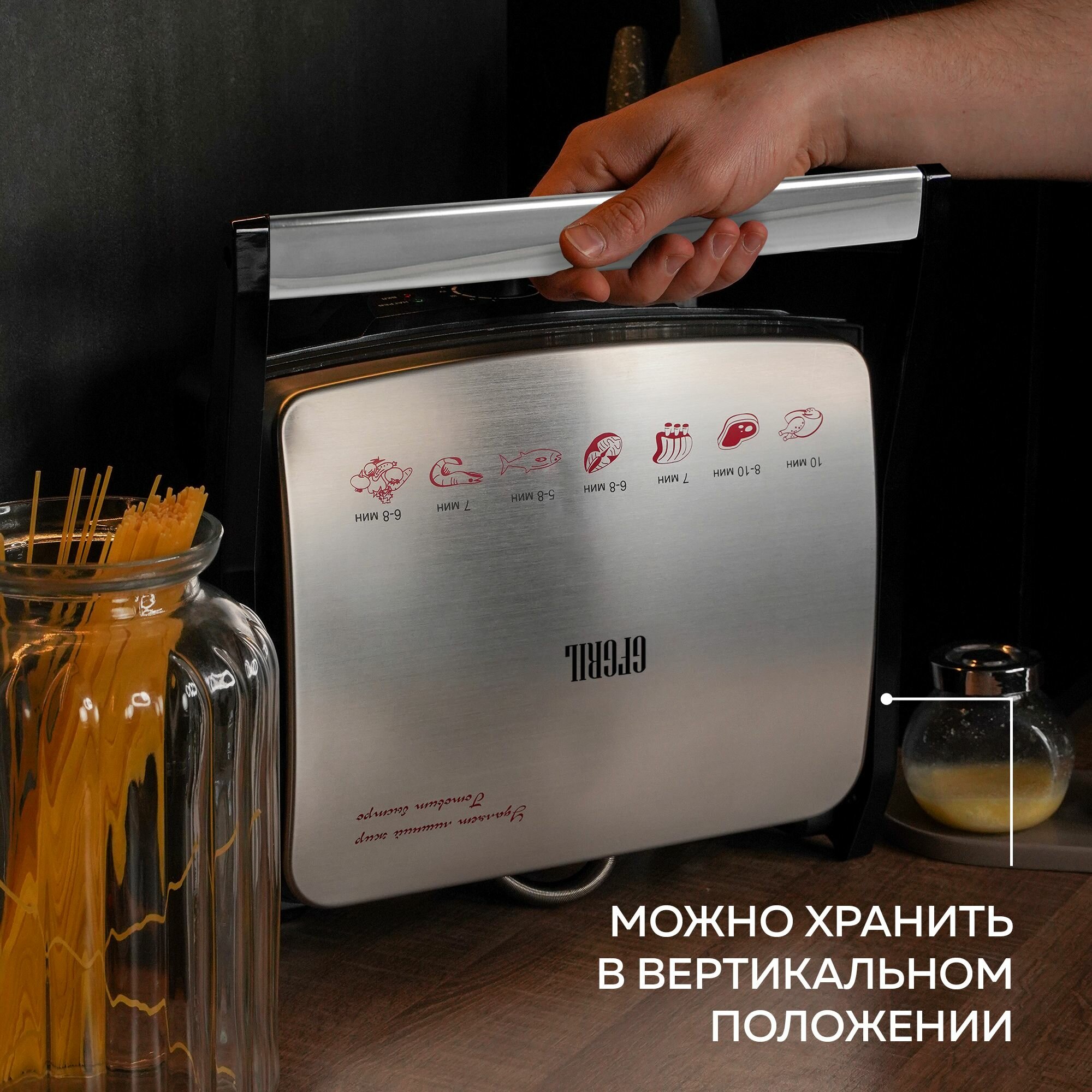 СохранитьGFGRIL Электрический гриль GF-065, антипригарные панели, 2.000 Вт, вертикальное хранение, открывается на 180 градусов, регулировка наклона, термостойкая ручка, электрогриль интересное: