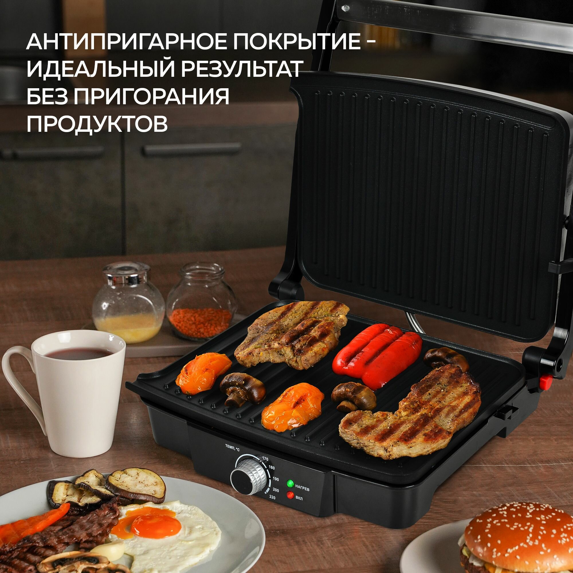 Купить GFGRIL Электрический гриль GF-065, антипригарные панели, 2.000 Вт, вертикальное хранение, открывается на 180 градусов, регулировка наклона, термостойкая ручка, электрогриль