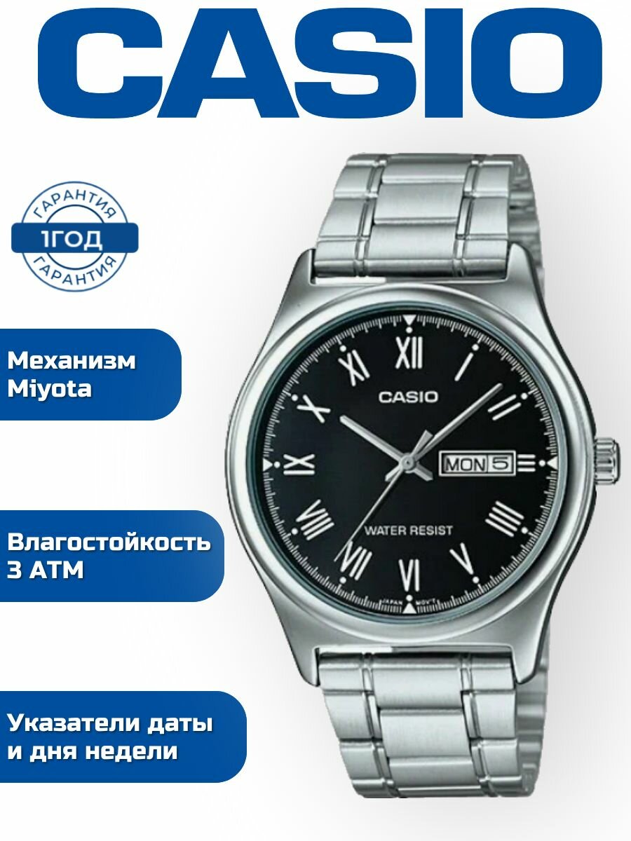 Наручные часы CASIO MTP-V006D-1B, черный, серебряный