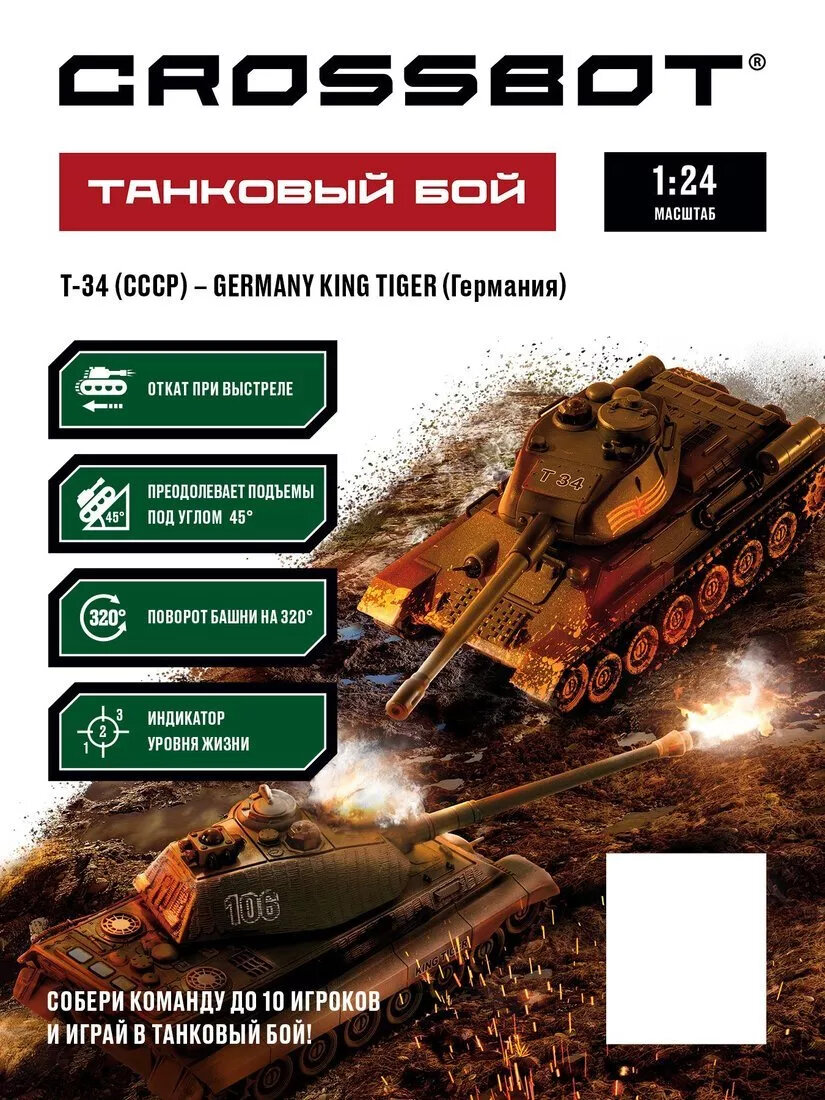 Танковый бой Crossbot р/у 1:24 Т-34 (СССР) - GERMANY KING TIGER (Германия) аккум 870622