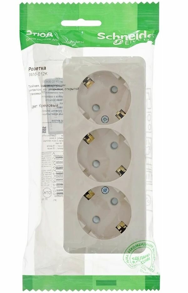 Ниже Вы можете прочитать отзывы на Розетка Этюд 5 шт 16А 250B тройная с заземлением с защитными шторками Schneider Electric/Systeme Electric открытая установка кремовый PA16-012K, ознакомится с подробными характеристиками, посмотреть интересные обзоры и фотографии на Розетка Этюд 5 шт 16А 250B тройная с заземлением с защитными шторками Schneider Electric/Systeme Electric открытая установка кремовый PA16-012K.