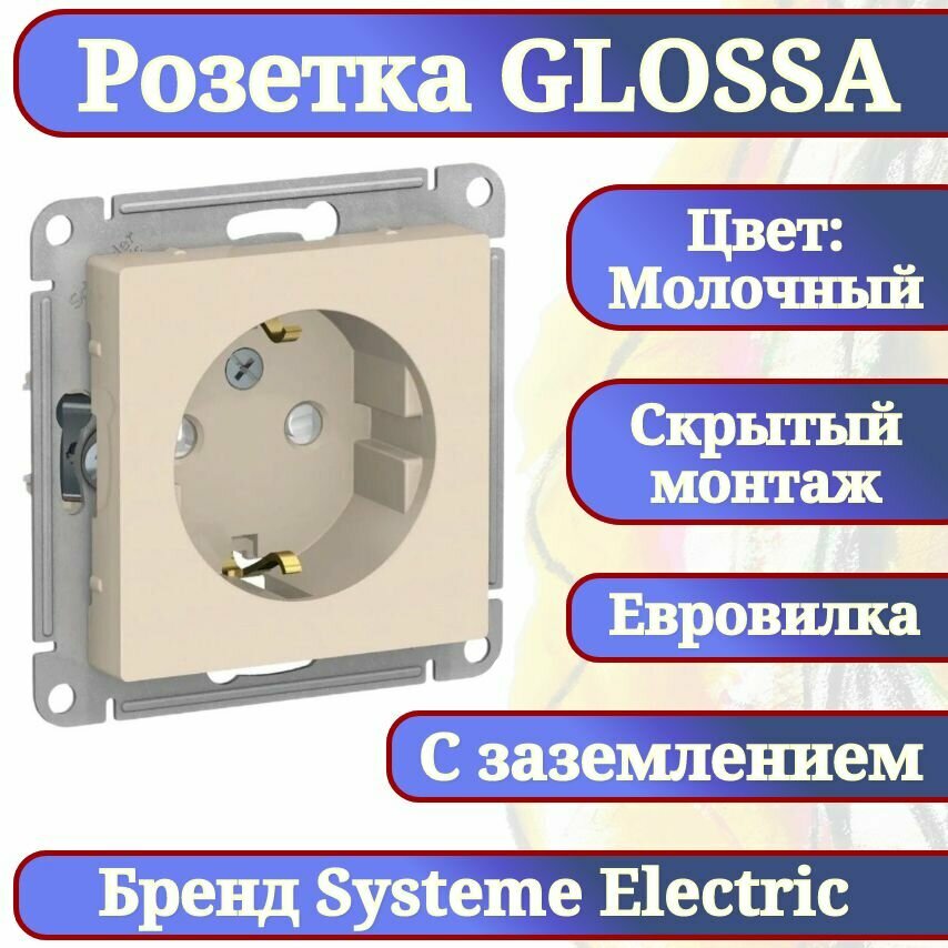 Розетка Systeme Electric (schneider Electric) SCHNEIDER ELECTRIC GLOSSA с заземлением,16А, 250В, механизм, молочный