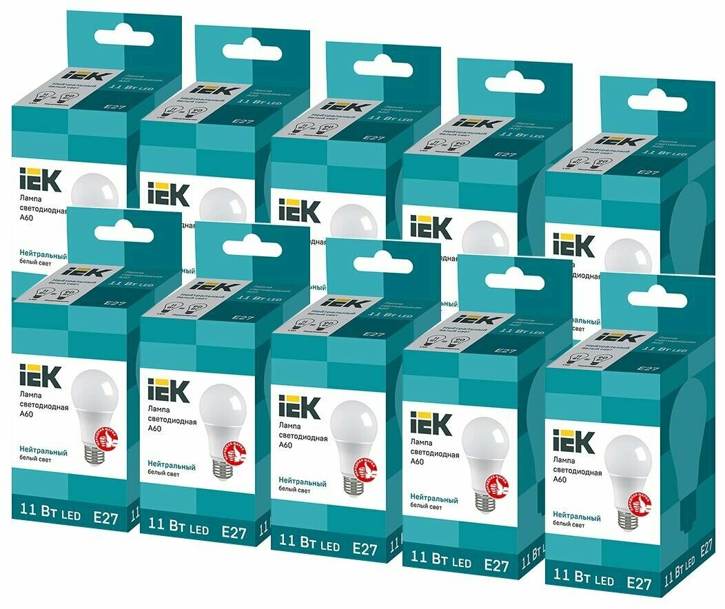 (12 шт.) Светодиодная лампочка IEK A60 11Вт 230В 4000К E27