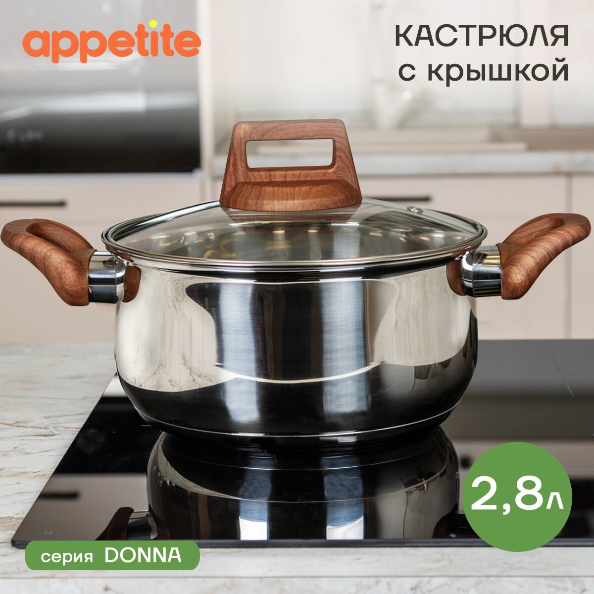 Кастрюля нержавеющая Donna 2,8л ТМ Appetite