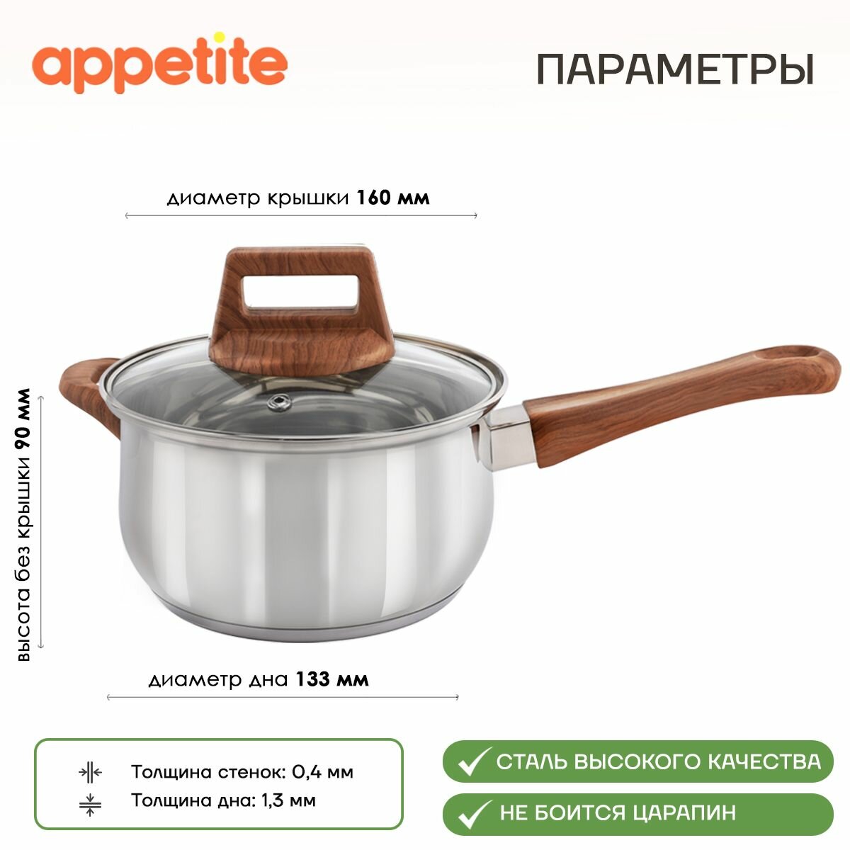 Кастрюля Appetite Ferma, 2 л, диаметр 16 см