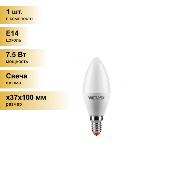 Светодиодная LED лампа Wolta лампа свеча C37 E27 7,5W(625Lm) 4000K 4K 4K 100X37 25SC7.5E27 (упаковка 10 штук)