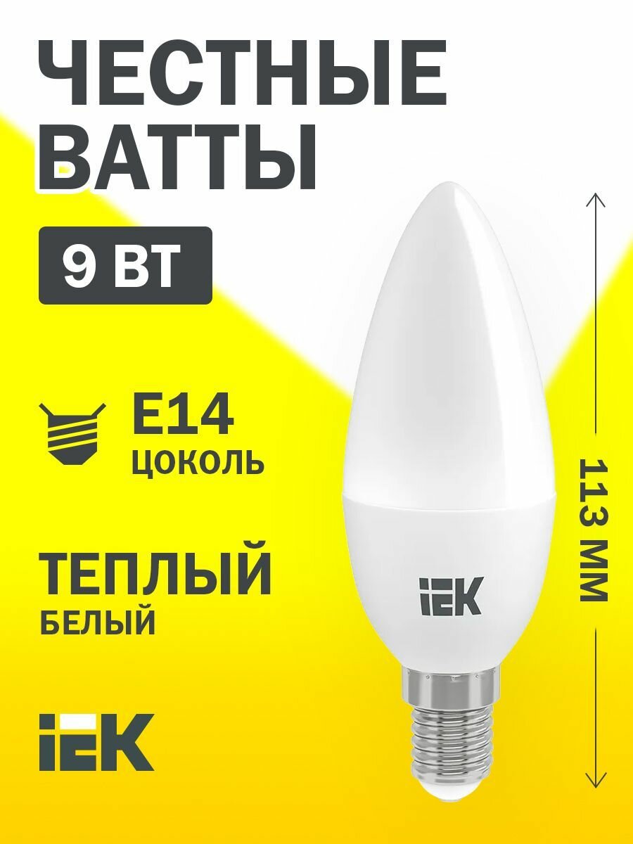 (14 шт.) Светодиодная лампочка IEK C35 9Вт 230В 3000К E14