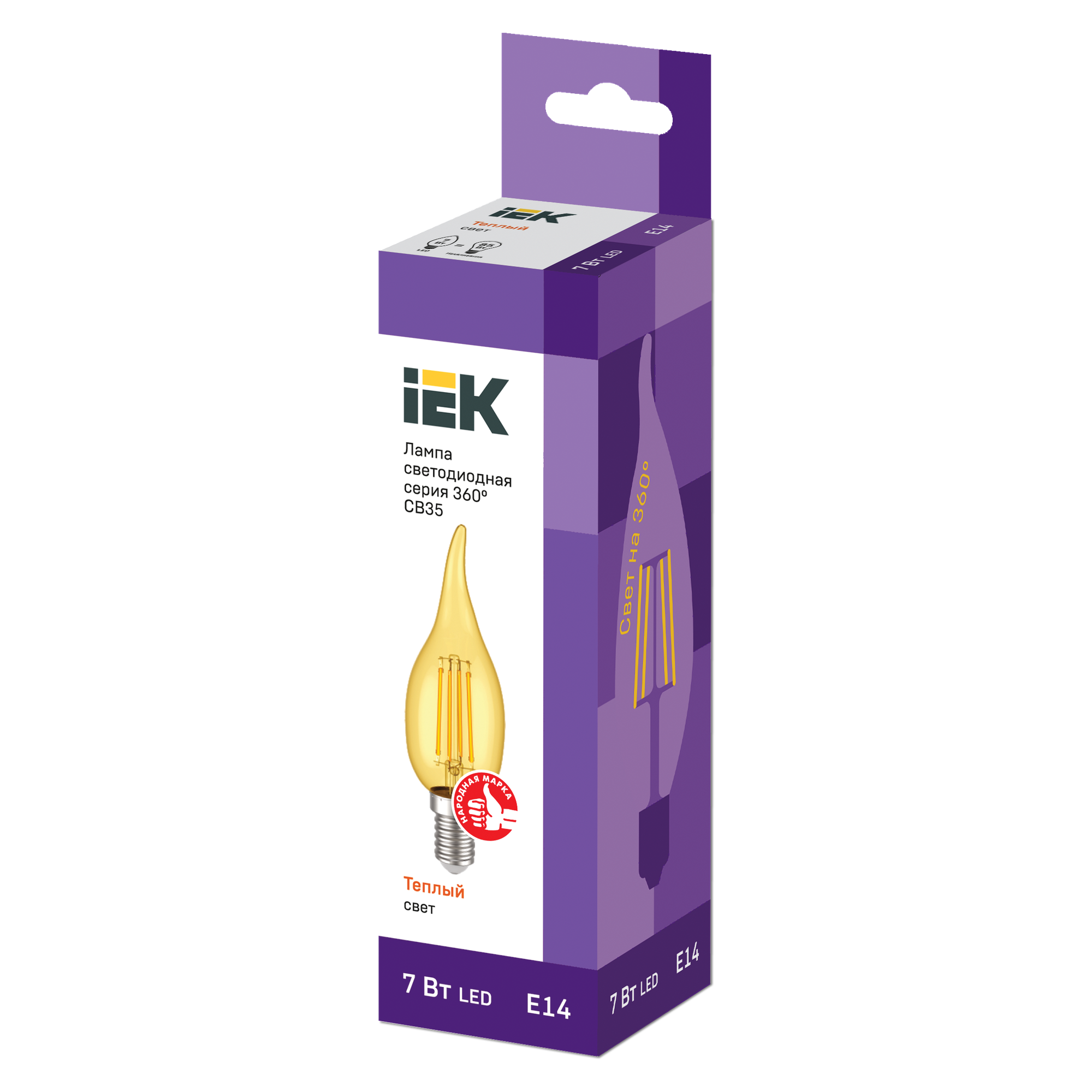Iek LLF-CB35-7-230-30-E14-CLG Лампа LED СВ35 св.н в зол. 7Вт 230В 2700К E14 серия 360