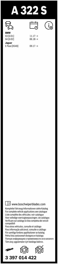 Комплект стеклоочистителей Bosch Aerotwin A322S для BMW X3 [G01] с 2017, X4 [G02] с 2018, Jaguar E-Pace с 2017