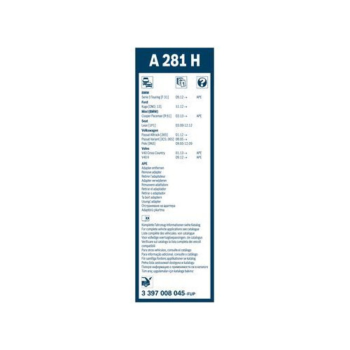 Щетка стеклоочистителя BOSCH A281H, 280мм, задняя, 1шт, 3397008045
