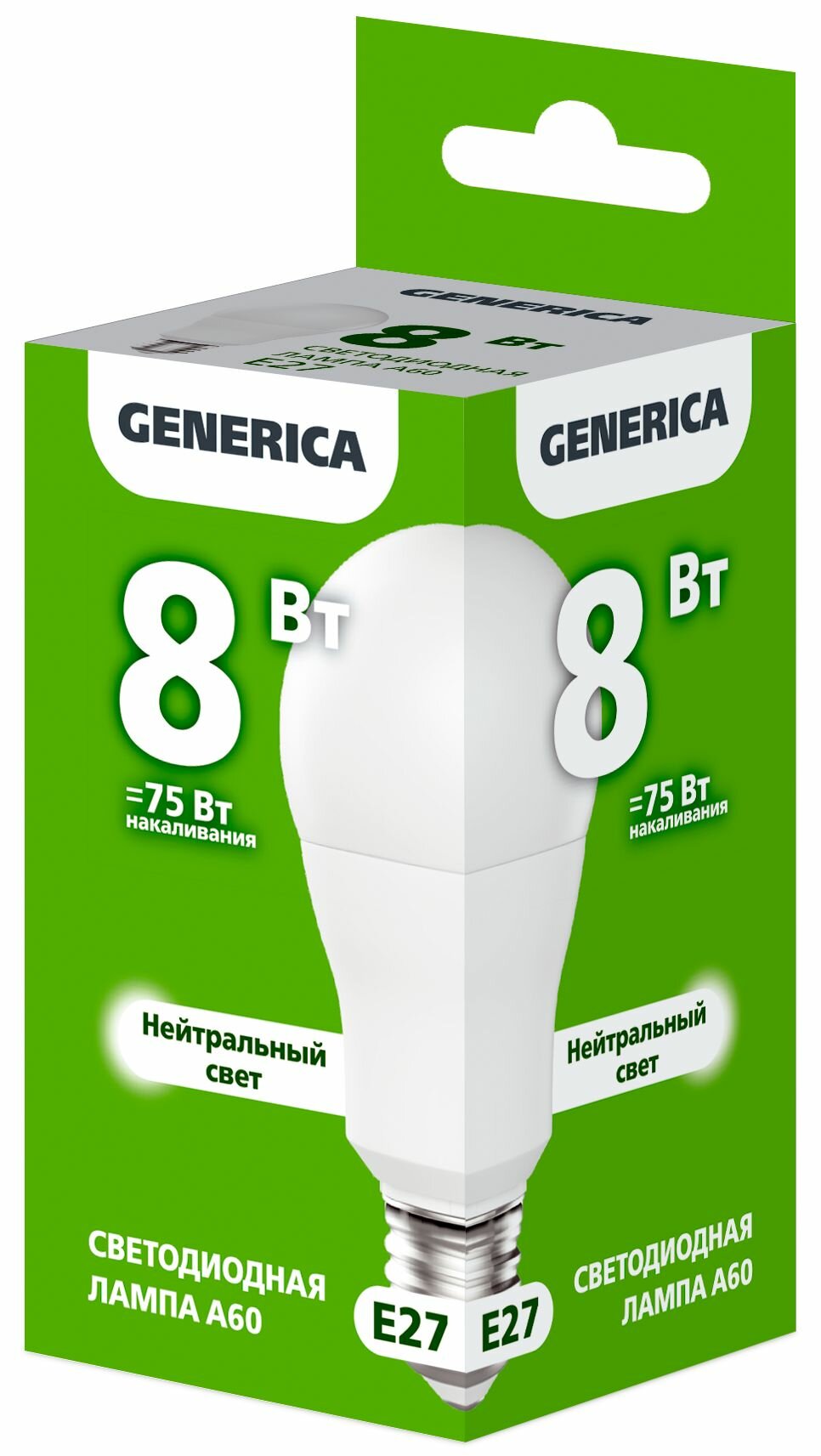 Купить Лампа светодиодная A60 8Вт грушевидная 4000К E27 230В GENERICA LL-A60-08-230-40-E27-G