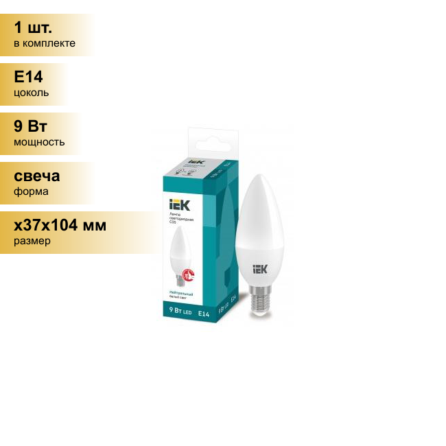 IEK свеча C35 E14 9W(810lm) 4000К 4K ECO LLE-C35-9-230-40-E14