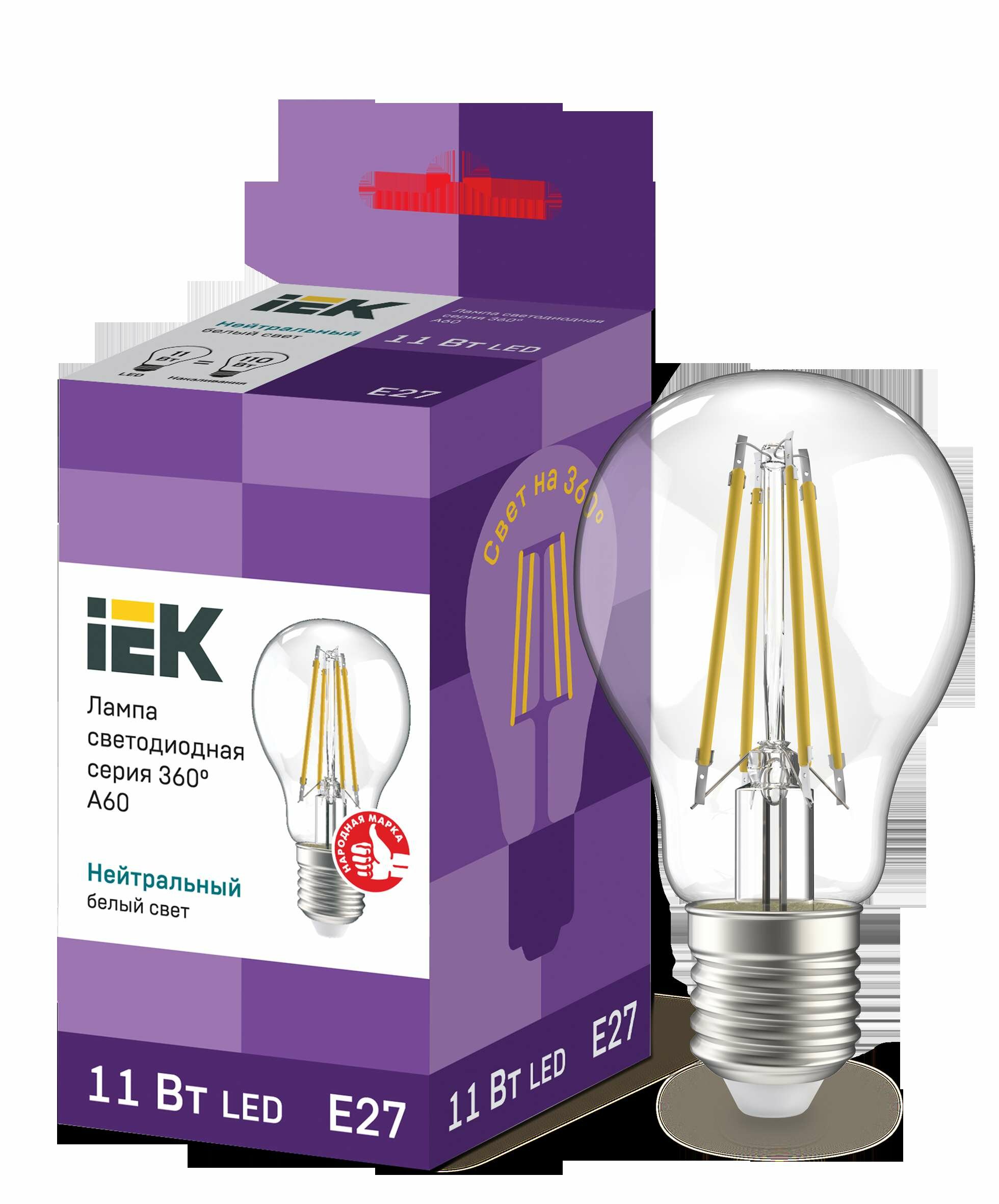 Купить Светодиодная лампа LED A60 шар прозр. 11Вт 230В 4000К E27 серия 360° IEK