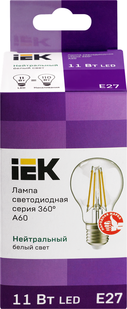 СохранитьСветодиодная лампа LED A60 шар прозр. 11Вт 230В 4000К E27 серия 360° IEK интересное: