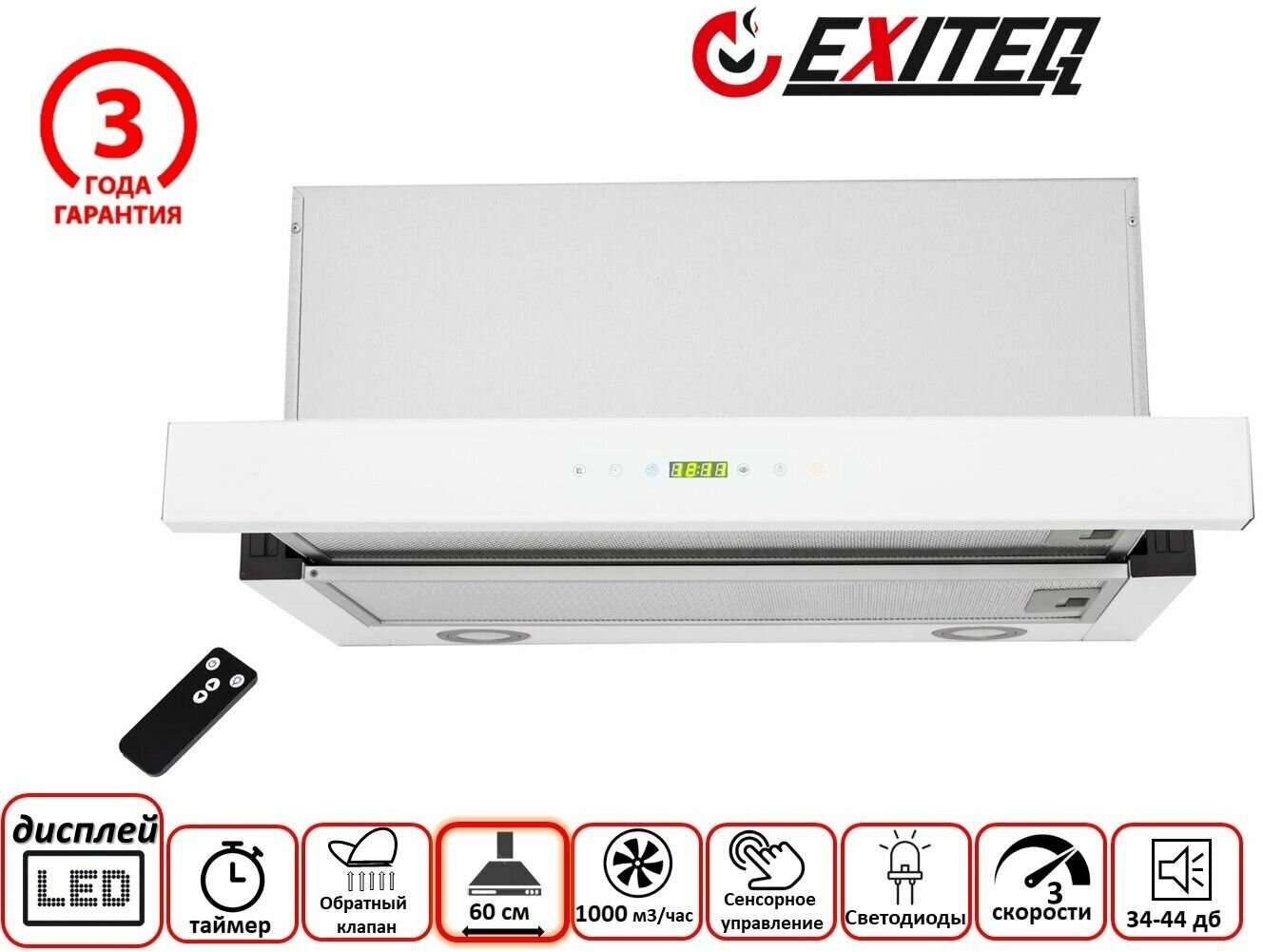 Кухонная вытяжка Exiteq EX - 1146 white интересное: