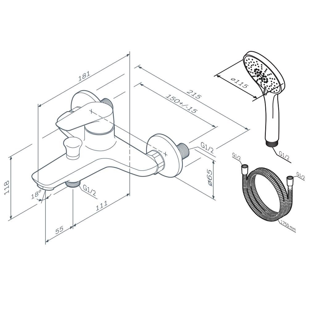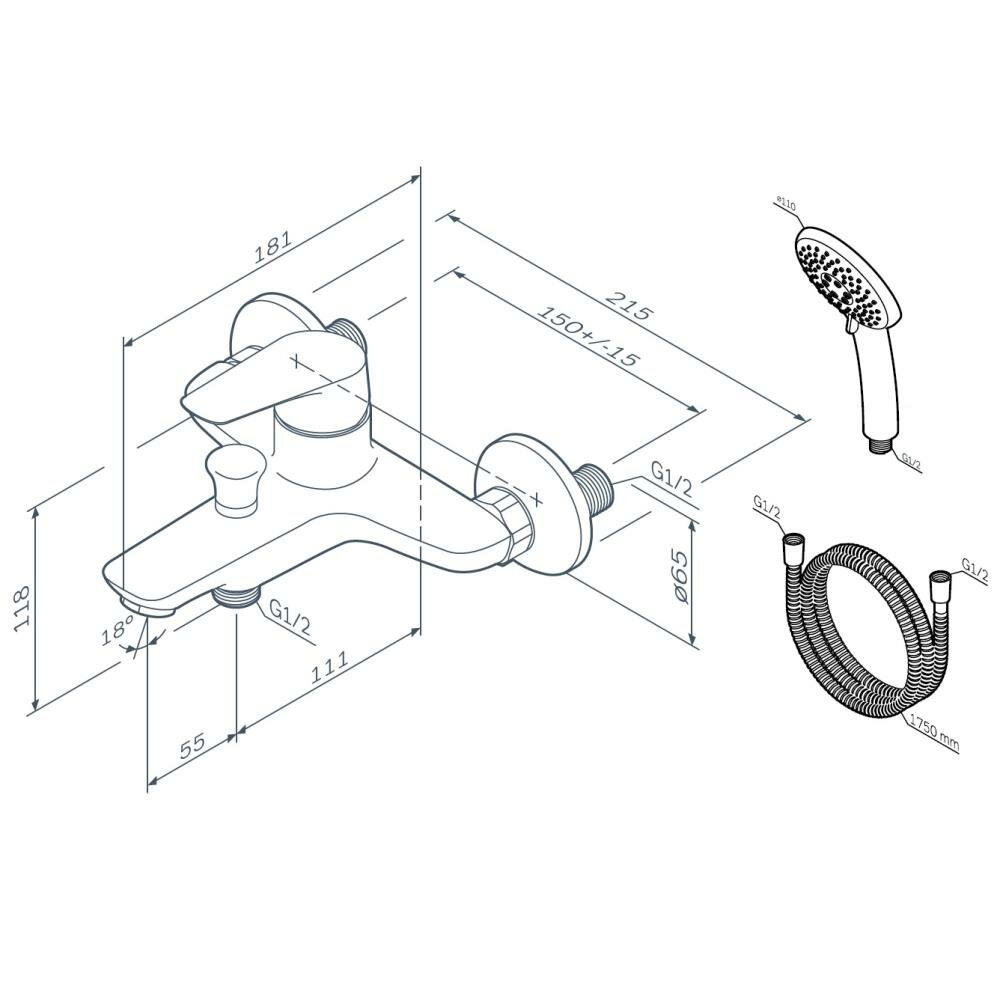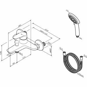 | Комплектация | Смеситель / ручной душ / держатель настенный / шланг / инструкция / эксцентрические переходники / декоративные розетки |