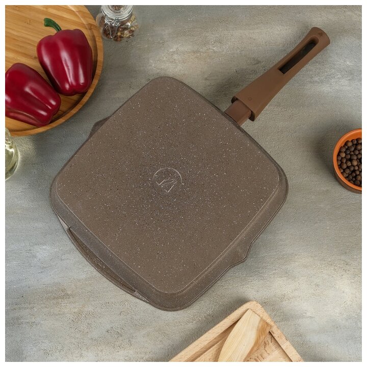 Сковорода-гриль "Мечта" «Гранит», 24×24 см, съёмная ручка, стеклянная крышка, антипригарное покрытие, коричневый