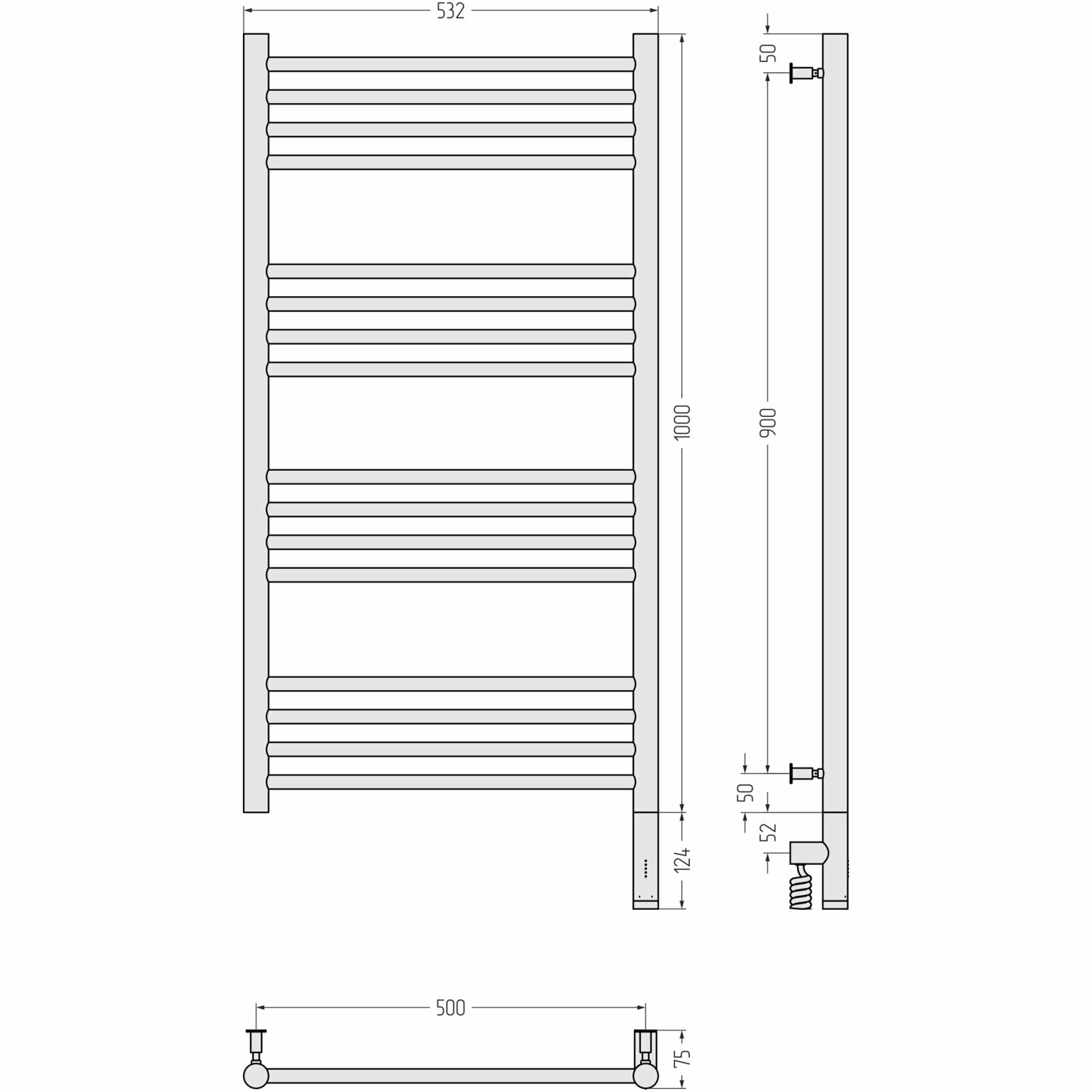 Полотенцесушитель электрический "богема 3.0" прямая 1000х500 / МЭМ правый (Без покрытия)