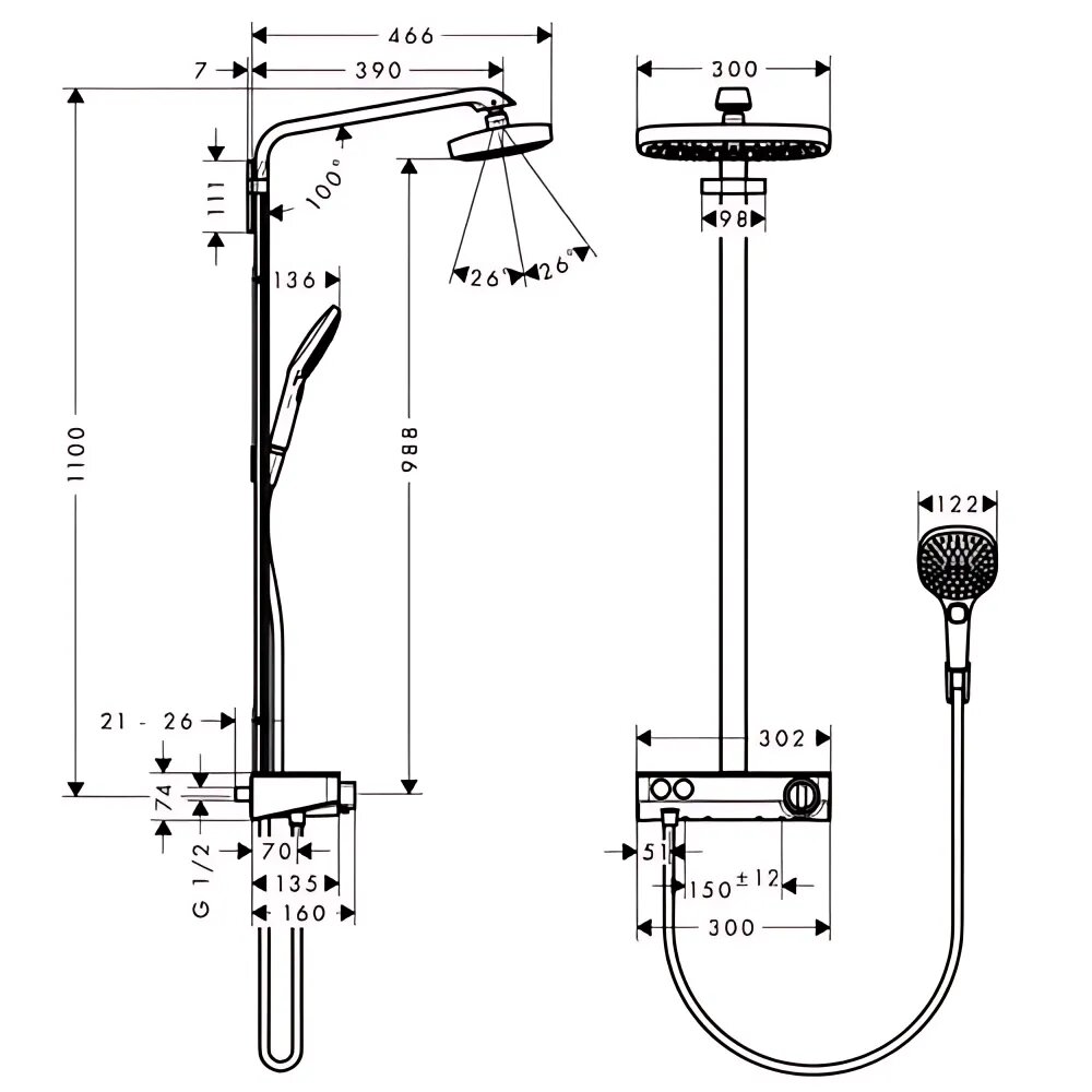 Душевая стойка Hansgrohe Raindance E Showerpipe 300 1jet ST600, хром 27363000