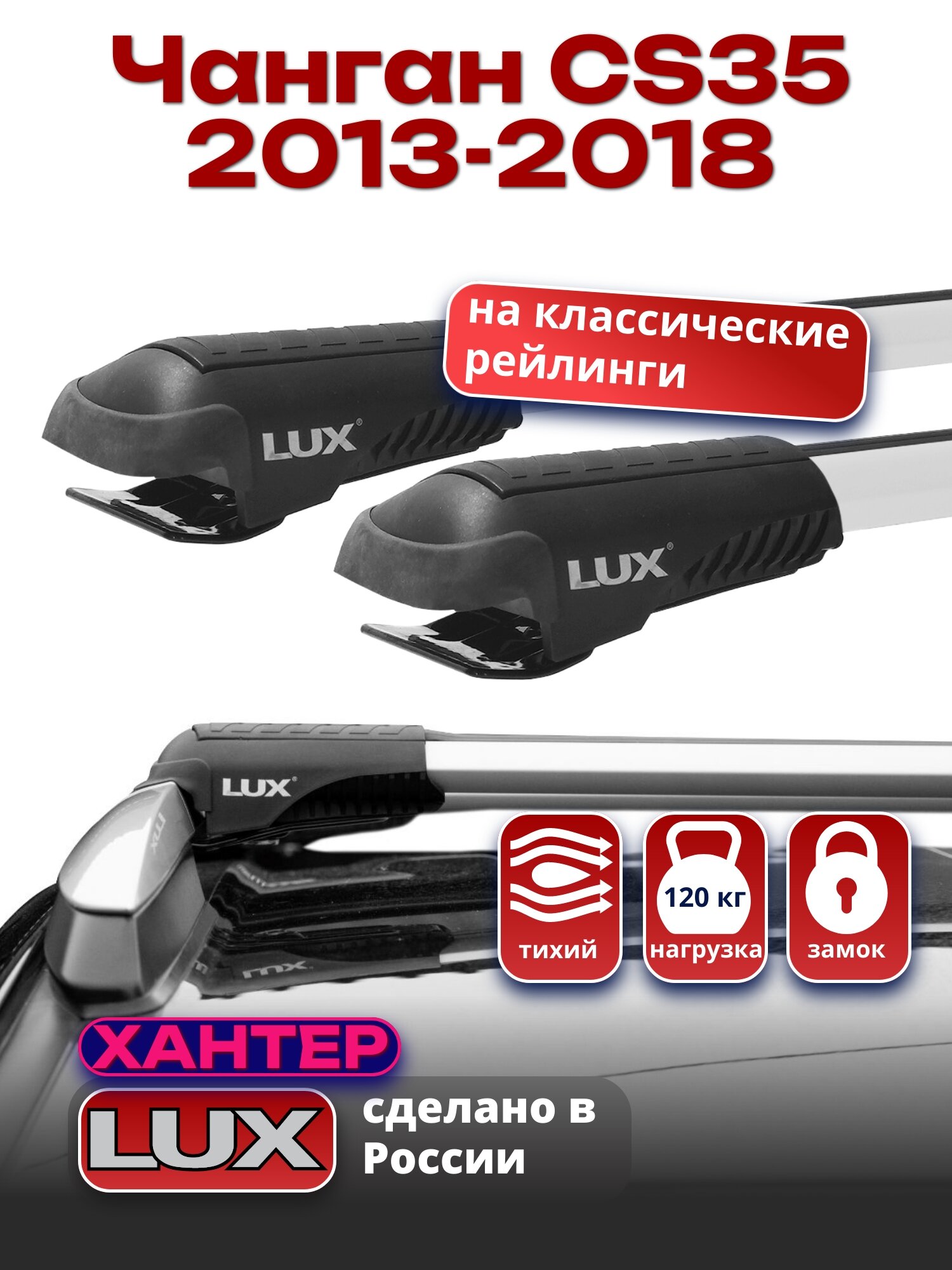 Багажник на крышу Чанган CS35 2013-2018 на рейлинги, LUX хантер интересное: